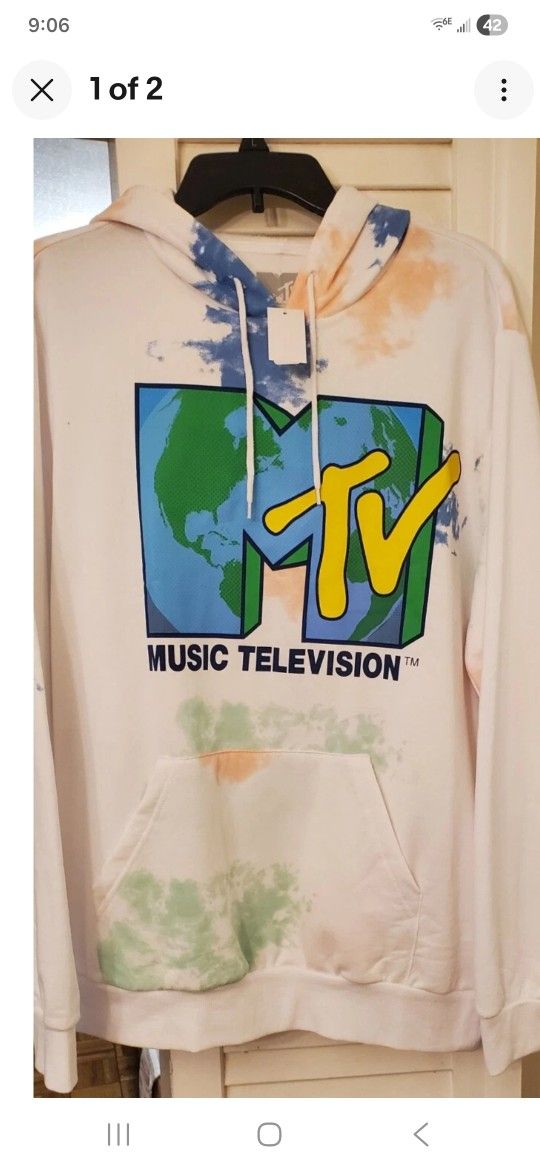 MTV RETRO TIE DYE HOODIE LARGE NEW MENS
