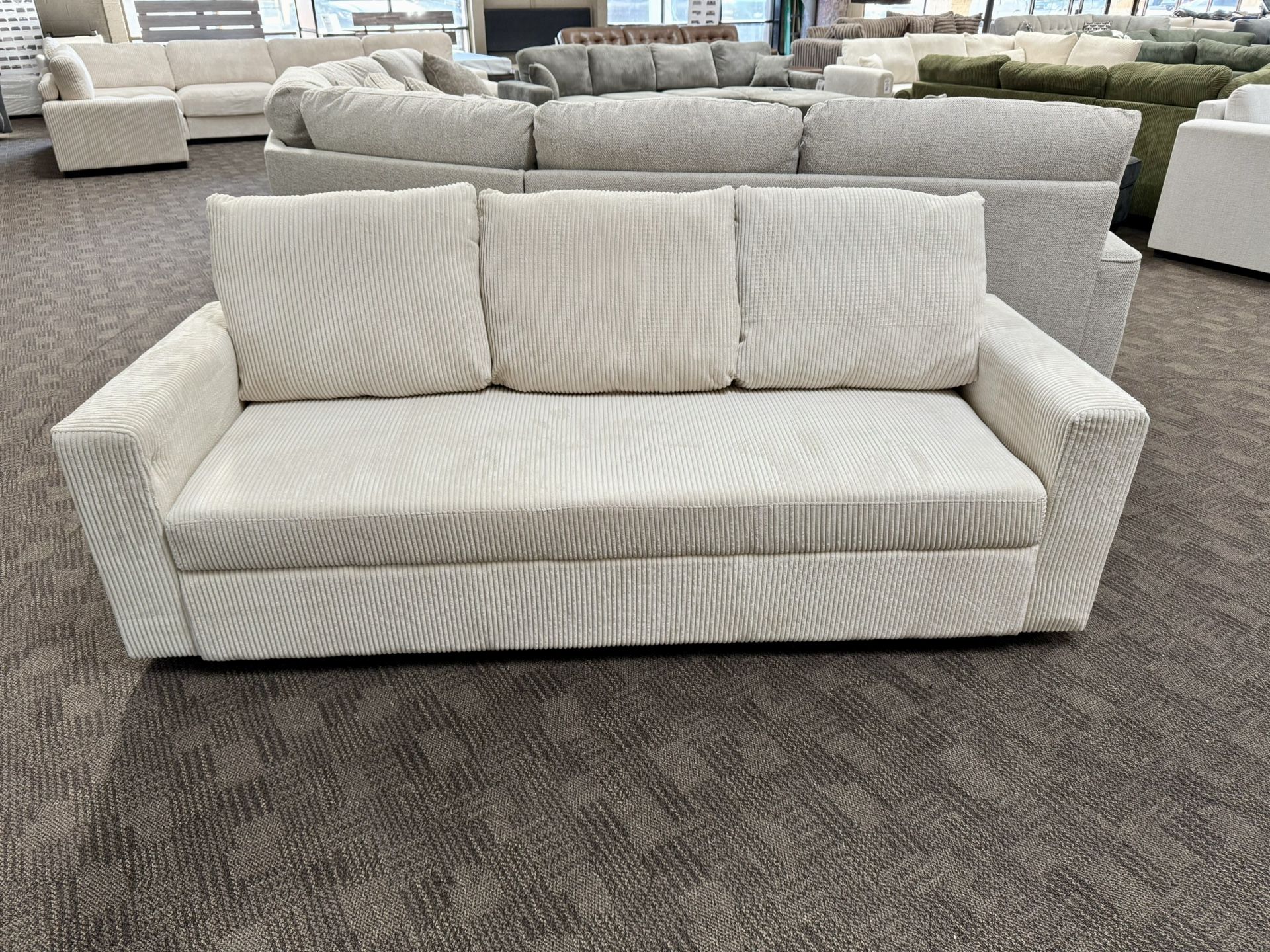 Brand new in box! Folds out to make a queen bed! Financing available! Dimensions: Sofa: 85" x 32" x 33"H Pull-Out Bed: 85" x 57" x 33"H Color: Ivory Material: Corduroy Will deliver for a fee. Message with any questions!