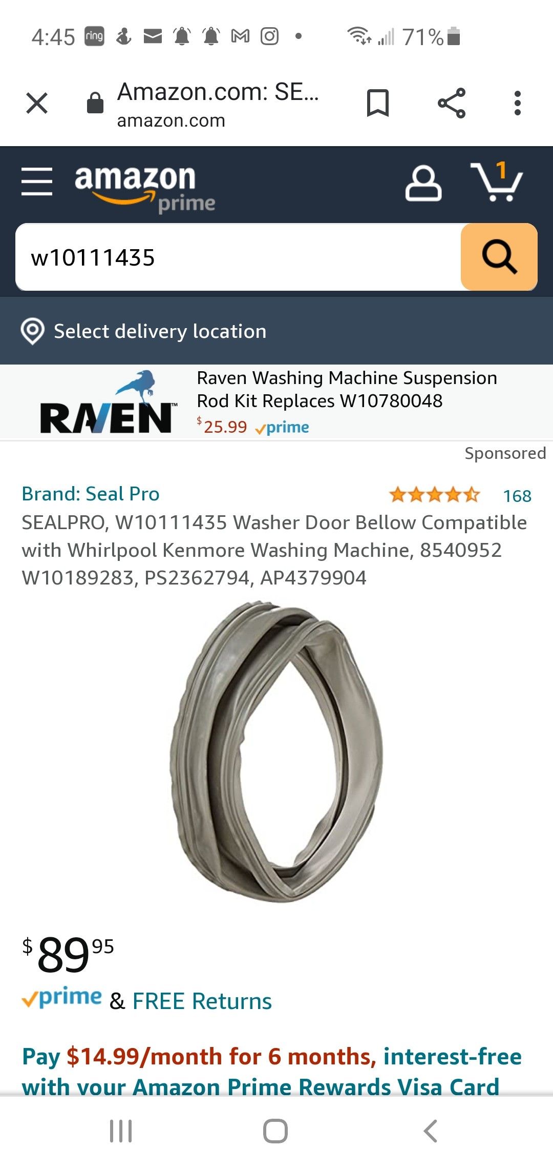 Front load washer door seal part #W10111435 , brand new, compatible with Whirlpool, Kenmore washing machine.