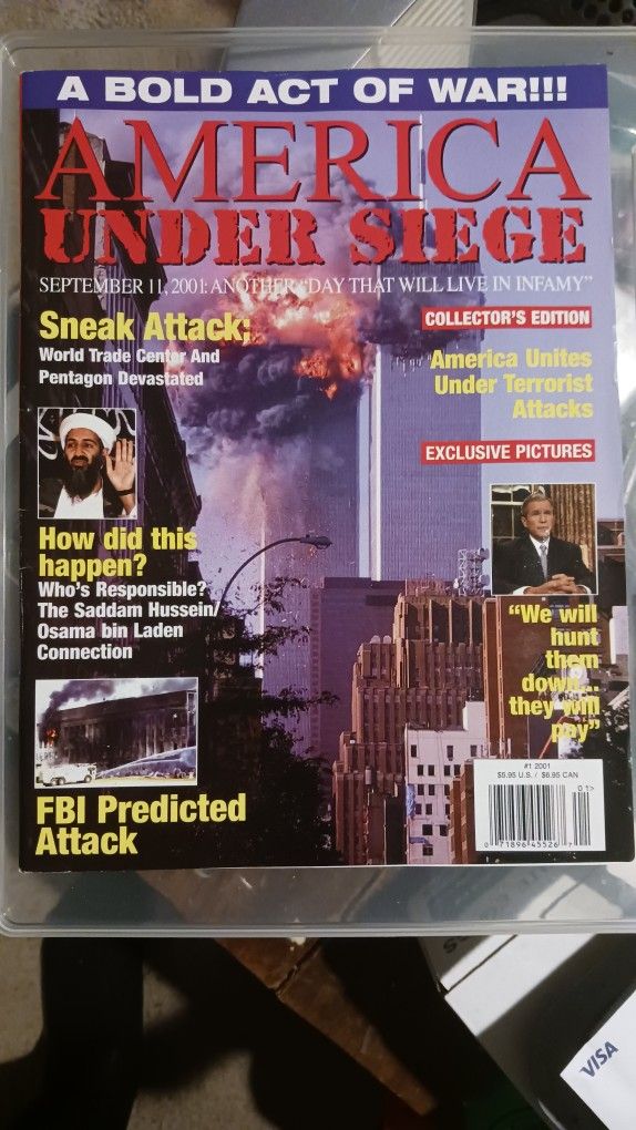 America Under Seige Magazine, September 11th, Collector's Edition —-------------------------------------------- IF IT'S LISTED, IT'S AVAILABLE!!! —-------------------------------------------- From a Smoke and Pet Free Home. We do our best to ship the next business day! Be sure to check out our other items and let us know if you would like to bundle and not only save on shipping, but also receive an added discount!!! If you have any questions, please, don't hesitate to ask! —-------------------------------------------- IF IT'S LISTED, IT'S AVAILABLE!!! —--------------------------------------------