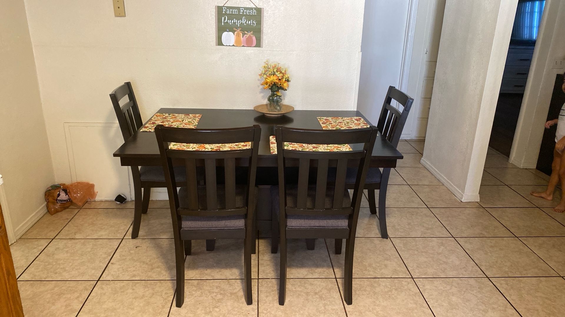 Dining set used but in very good condition, includes 4 chairs and a bench, dark brown color. I don't need it anymore, that's why I'm selling it