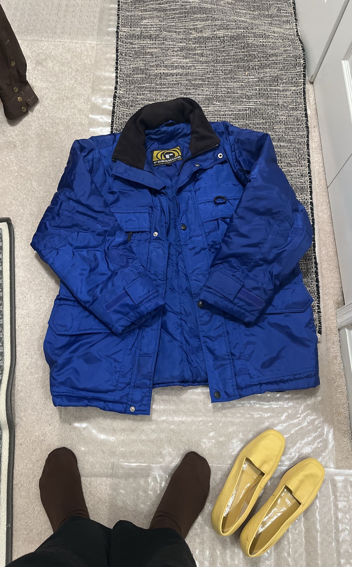 Men’s winter gear - great for cold mountains, Light Weight, Thick Jacket, Blue; even though it show S/P it fits medium to normal large built, slightly used.