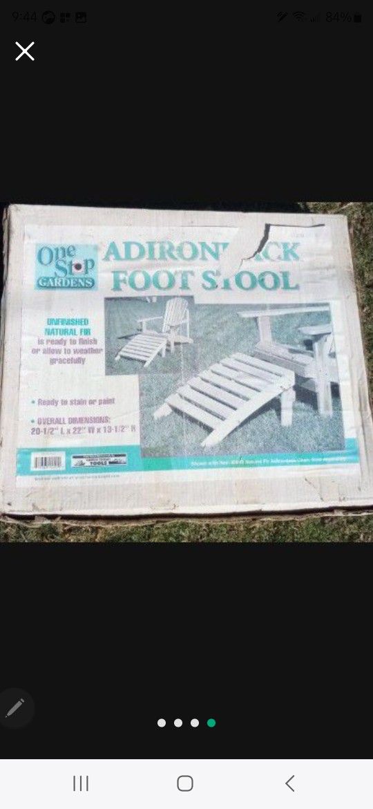 Wooden Adirondack Footstool, New, in box, needs to be assembled. Cash n Pick Up Only.