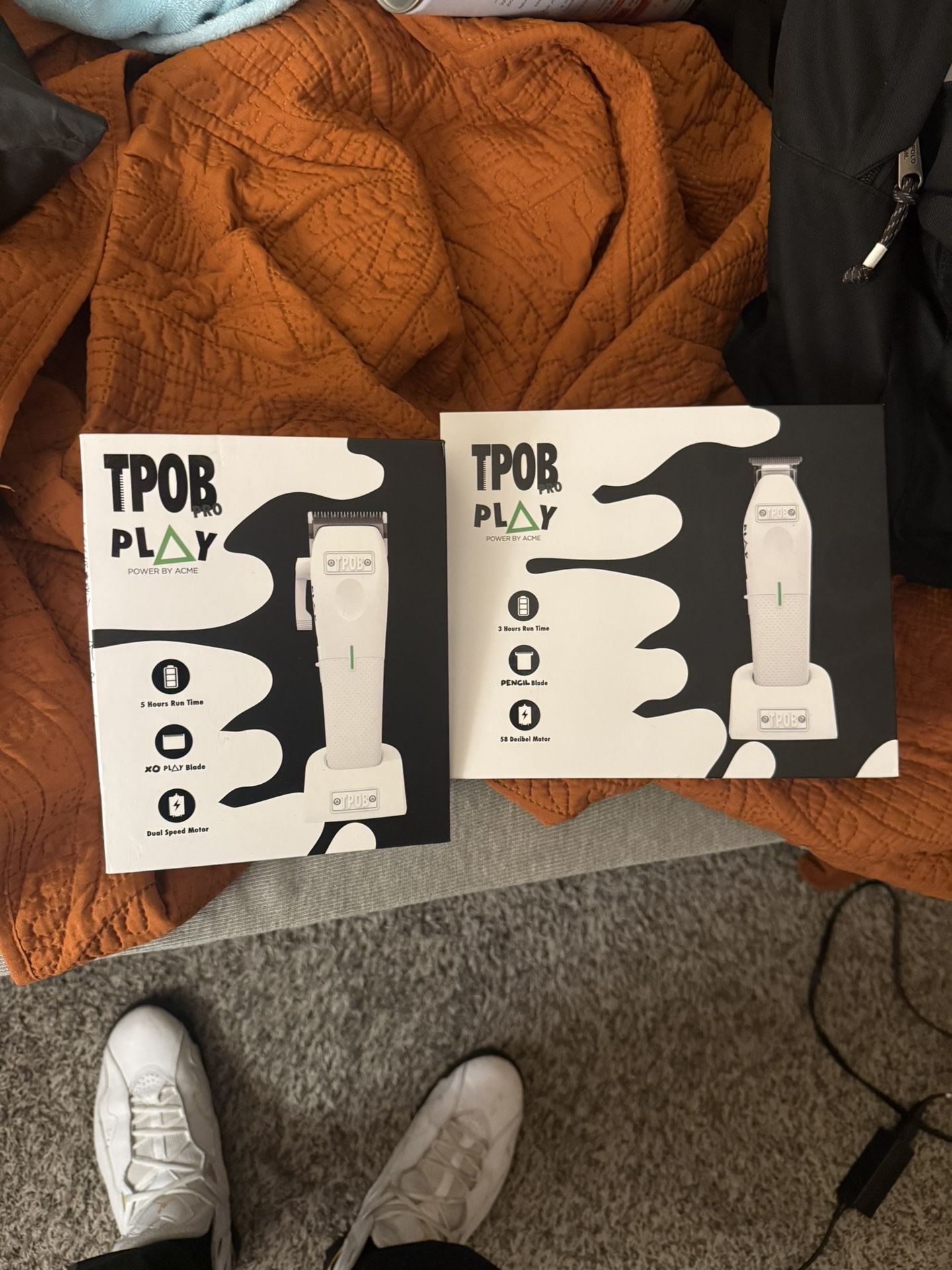 The tpob play clipper and trimmer set.? They are used but work perfect I’ve probably done only about 5 cuts on them. I trade out the blade of the play and put a chunk blade on it and for the trimmer I put a softy blade on it. Comes with a charger and also comes with the magnetic guards. Now depending how much you want to pay for a lil more I’ll throw more stuff in like the rubber grips for both of them. I got like 4 or 5 different colors for them. I also have charging docks. So I paid around 260 for everything im asking for 150 or best offer and that’s for everything you see.