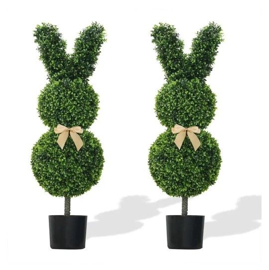 Set of 2 Topiary Bunnies Tree 2025 Easter Artificial Bunny, 3.5ft High/Nuevo