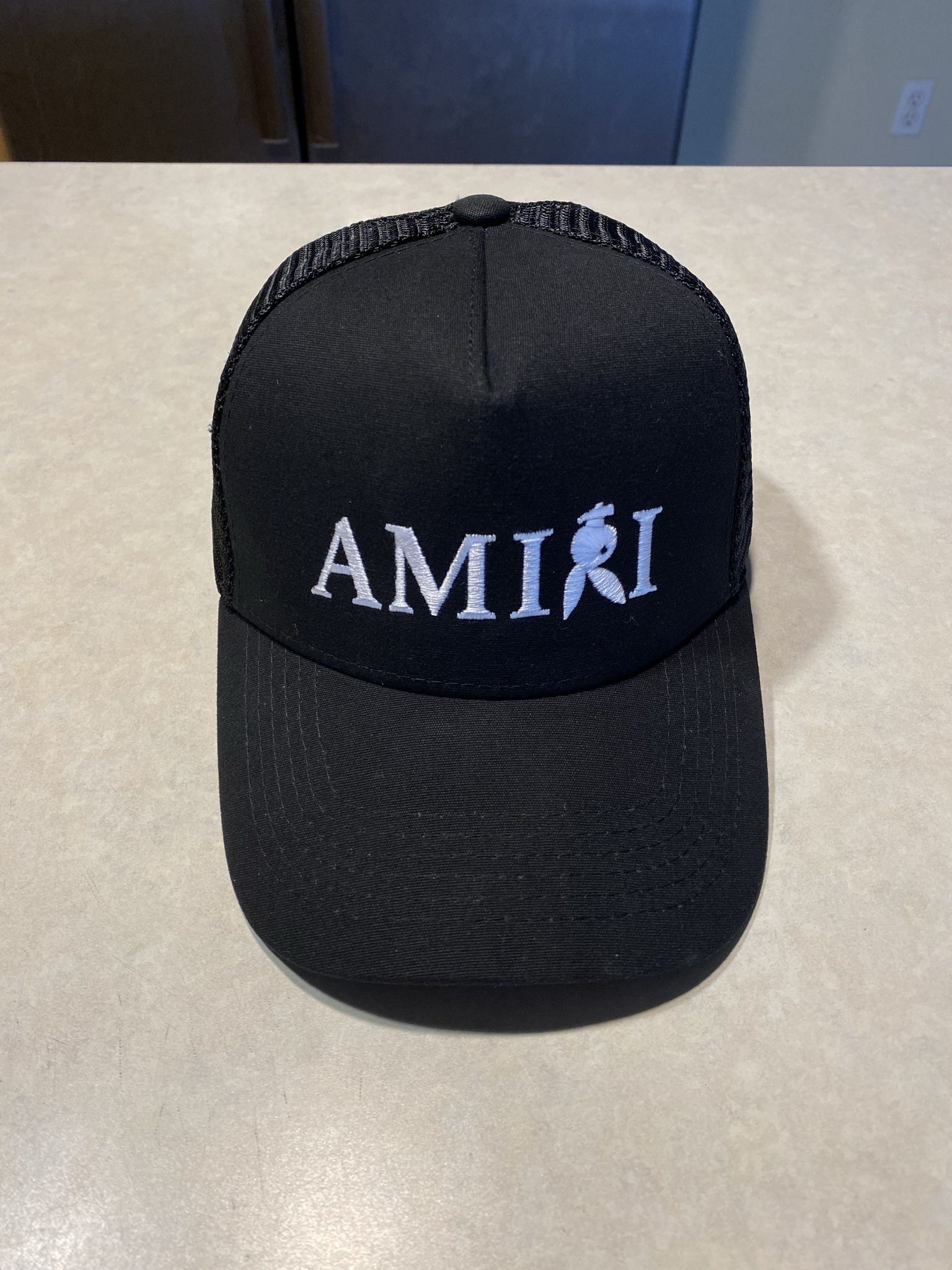 AMIRI Reverse Playboy Trucker Hat. Worn a handful of times but still in excellent condition. No major signs of wear whatsoever. Will be shipped out within the same day of payment confirmation!