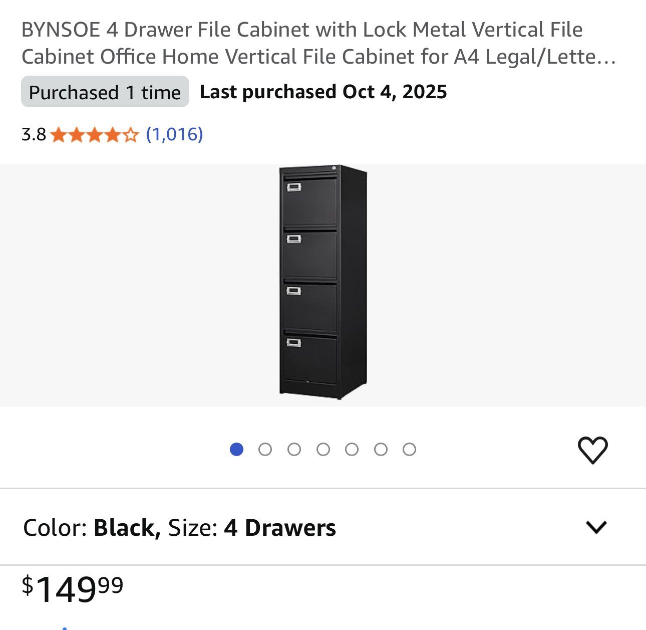 This is a black metal cabinet purchased from Amazon. It’s an office/commercial style file cabinet not a decorative style. The box is heavy. It is still in the box and has never been opened.