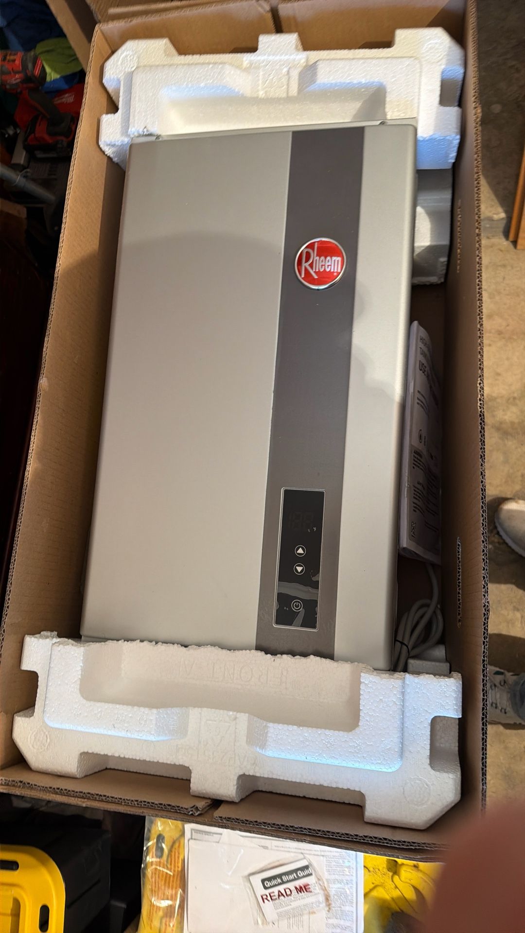 OPEN TO TRADES. RHEEM RTG-70DVLN-3 TANKLESS WATER HEATER