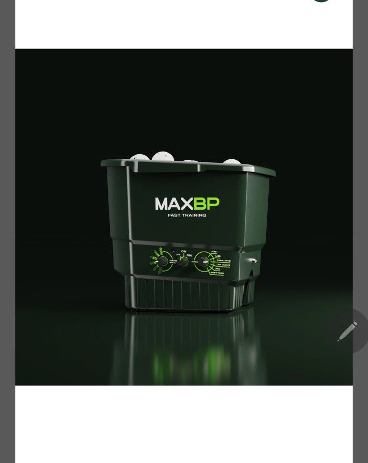 Max BP Machine With Tripod , Balls, 8 Hr Remote Batt With Plug In, 3 Weighted Bats Plus Bat Bag And Bag For Machine And web glove also a home plate. I recommend it highly, it's just we have no use for it and thought maybe someone else could benefit from it
