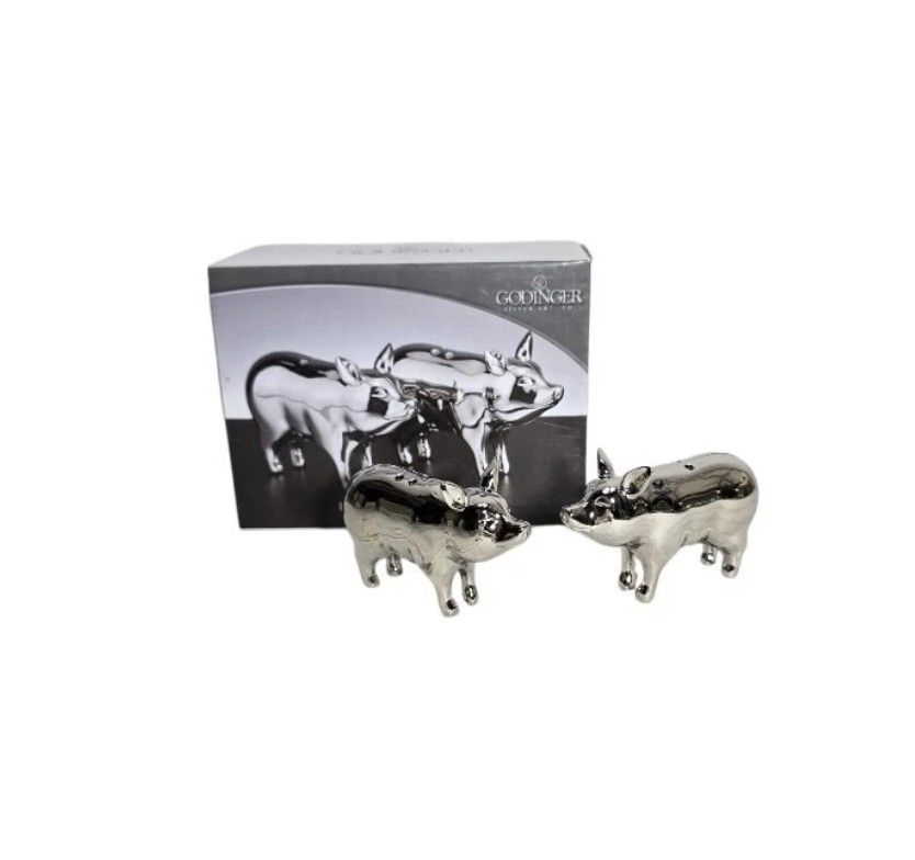 Godinger Silver Art Pigs Salt & Pepper Shakers Nickel Plated Condition: New in box Measures: 3" L × 2" H × 1" W aprox each Please check the photos well before buying. I can do bundles and combine the shipping . Smoke-free home You will receive the exact item shown in the photos.