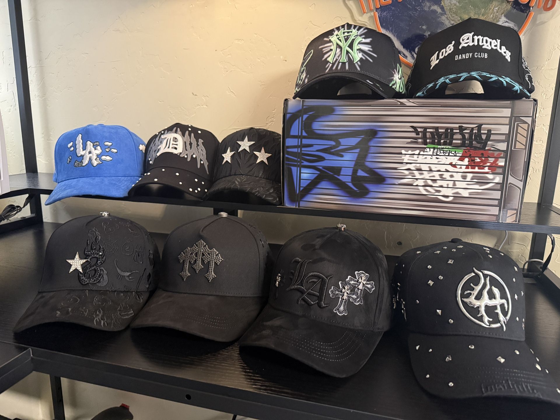 Barbas - B star graffiti ❌ Barbas - CT Rockstar ❌ Barbas - X rich the kid blackout chrome 31 hats - LA chrome 3 Dandy hats - losthills chrome 31 hats - LA money clouds Dandy hats X lost hills - Lost dandy 31 hats - graffiti ( full set ) original - 55 Dandy hats - Los Ángeles 31 hats - el mago (BOX ,DUST BAG) - 55 All hats come with there tag Barbas 45$ , dandy ,ThirtyOne 40$ Take everything left for 200$ All new let me know for more photos
