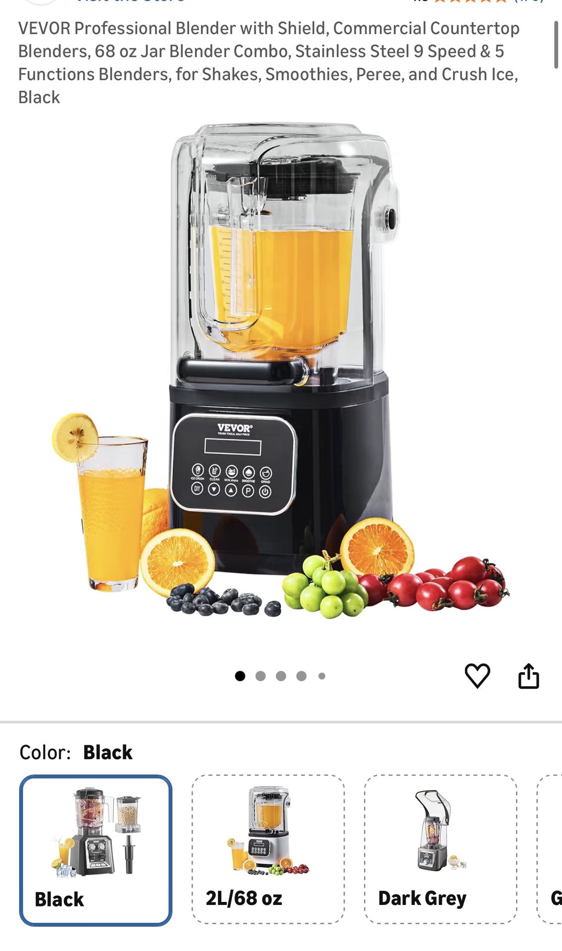 VEVOR Professional Blender with Shield, Commercial Countertop Blenders, 68 oz Jar Blender Combo, Stainless Steel 9 Speed & 5 Functions Blenders, for Shakes, Smoothies, Peree, and Crush Ice, Black brand new in the box does not come with cup