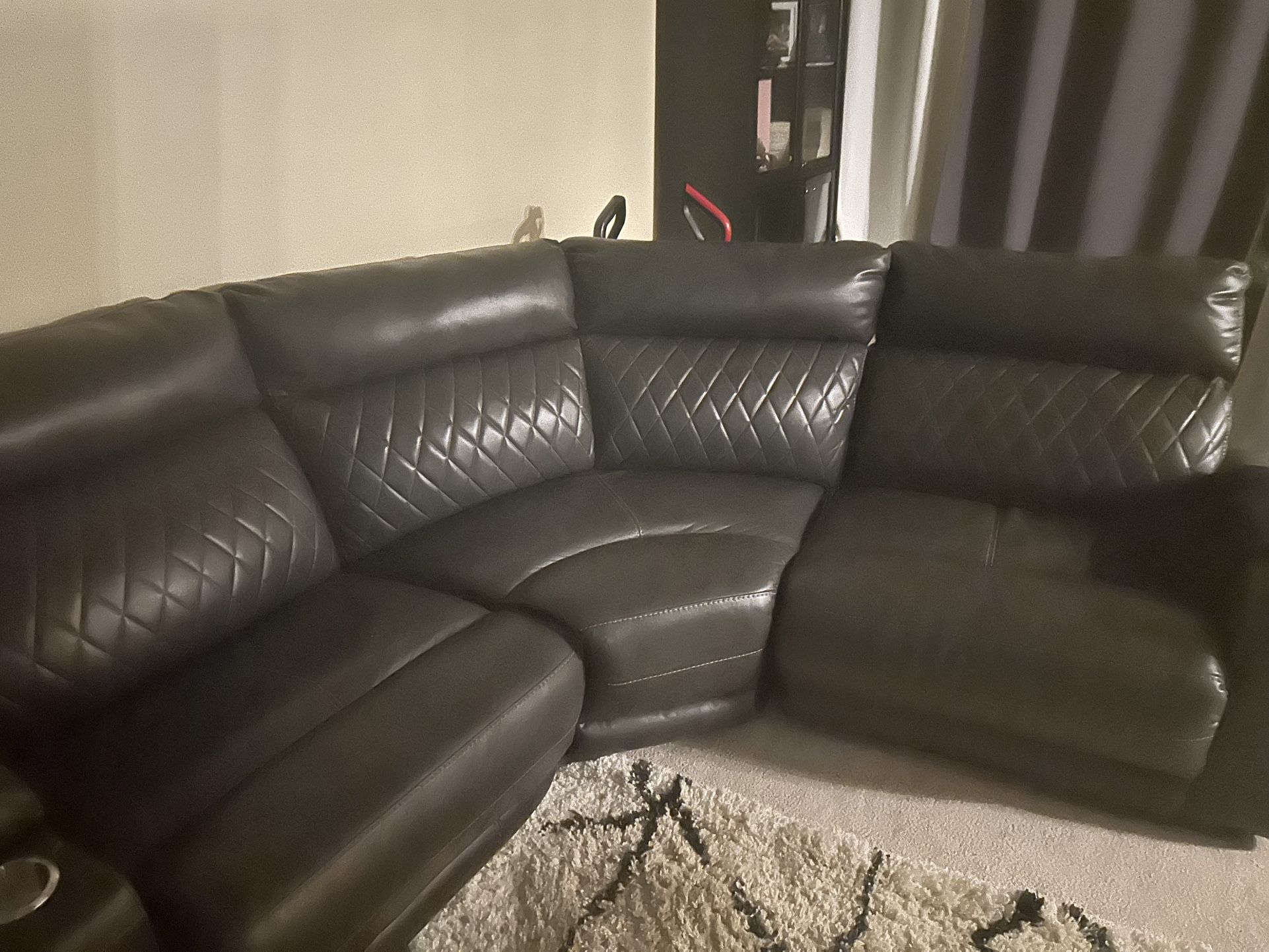 &600 like new two recliners included in the sofa Italian leather better be sit on and it’s a dark gray