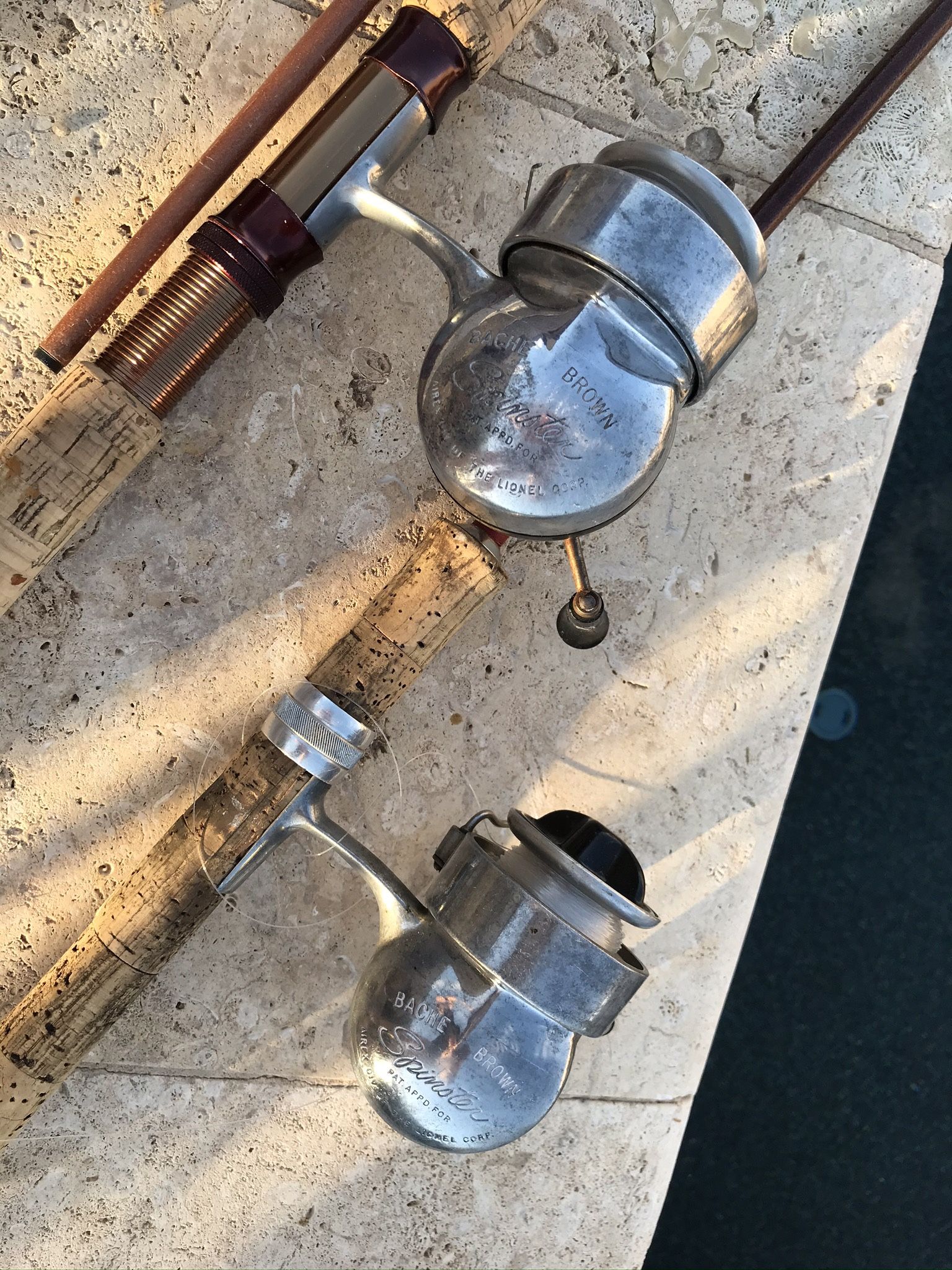 Bache Brown Spinster Reel with Betts / Daiwa Fishing Pole / Rod 🔶Vintage rod and reel for fishing / collector’s item / boat decor 🔸Division of Lionel Corporation 🔸Daiwa rod 🔸Betts Smooth Castor Rod 🔸As is