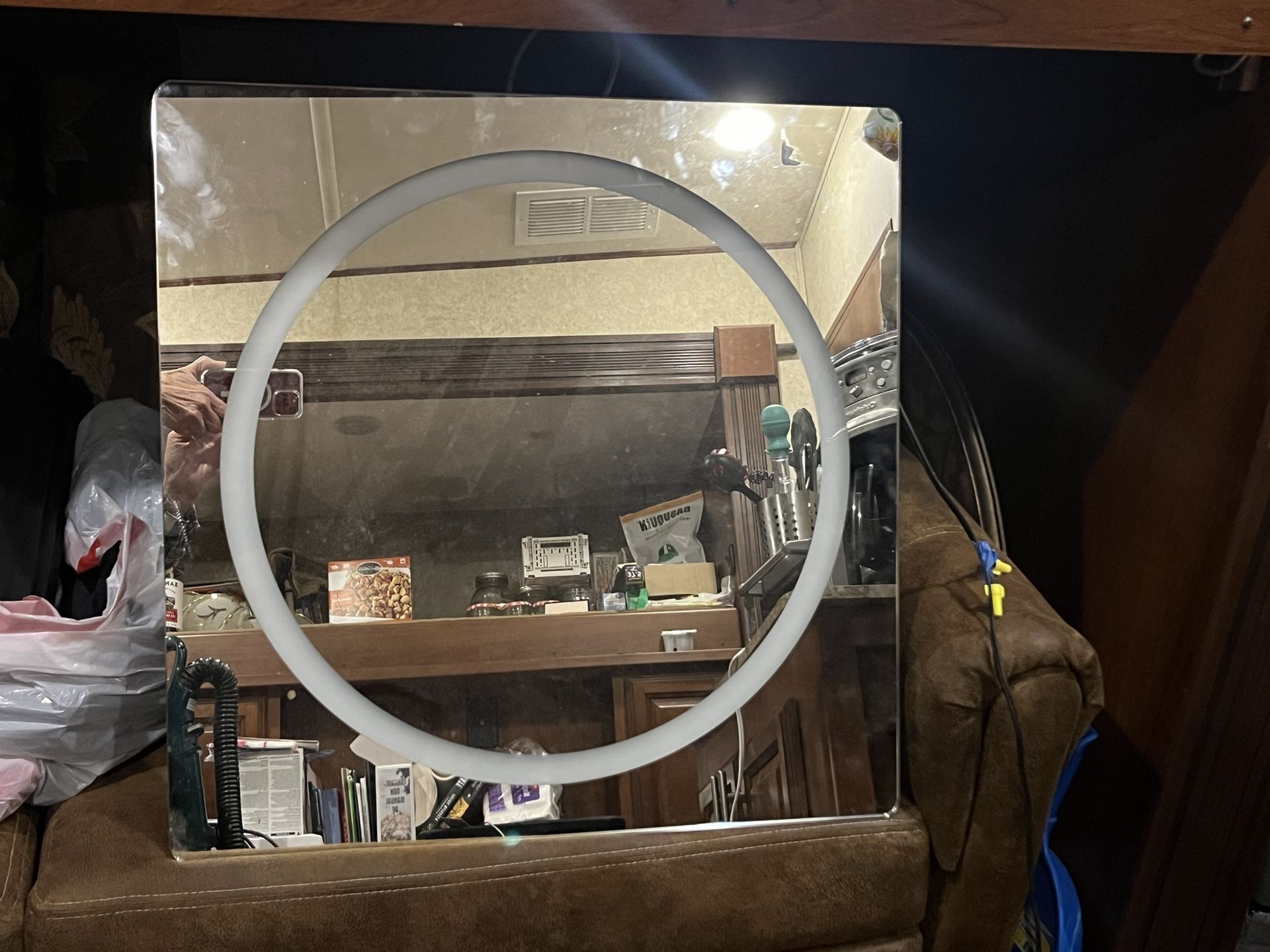 In very good condition. Has on/ off switch on the left side. Switch would make it difficult to fully recess in a wall. Outside dimensions 24x24.