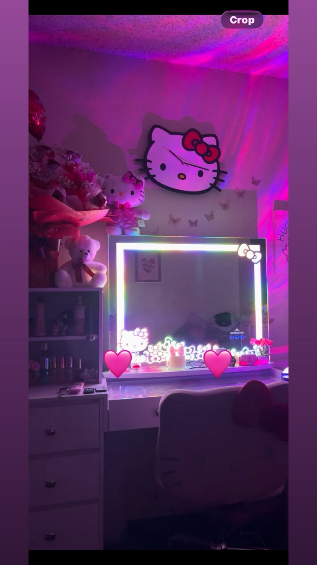 Very good condition Hello Kitty Vanity Set. Only had for a few months, vanity comes empty, not with all the decorations and items inside. Super cute hello kitty mirror with drawers #kawaii #hello kitty #sanrio #vanity #vanity set