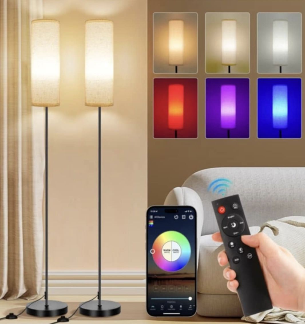 Brand New Set Of 2 RGB Floor Lamps With Dimmable Colors & Remote