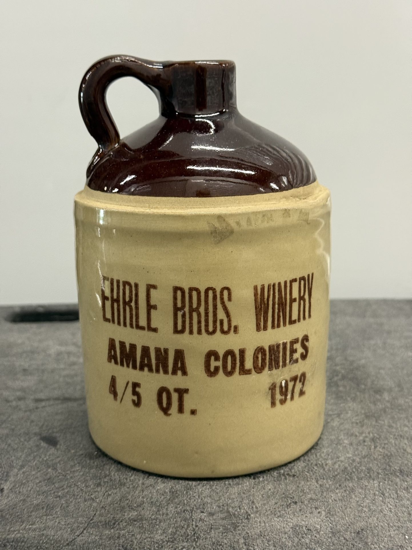 Ehrle Bros. Winery Crock Jug Amana Colonies 4/5 QT. 1972