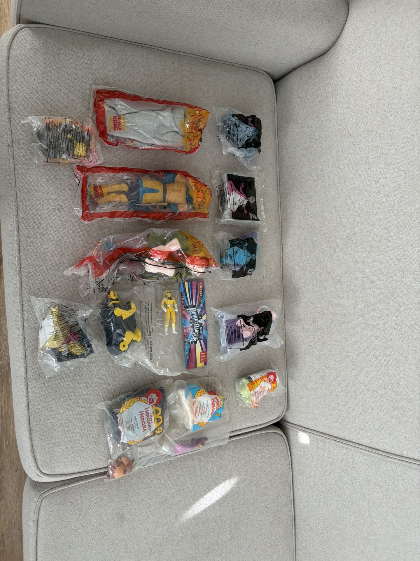 -Buz Lightyear - The Evil Emperor Zurg -Monsters Inc - George Sanderson -Monsters Inc - Celia Mae -Monsters Inc - Boo -Monsters Inc - Henry J Waternoose (glow in the dark eyes) -Monsters Inc - Rox -Hercules - Phil -Hercules - Magera and Pegasus -Hunchback of NotreDame - Quasimodo -Hunchback of NotreDameHercules - Phoebus -Hunchback of NotreDame - Hugo -Disney Baloo -Power Ranger - Yellow Ranger with Bear. All sealed in original packaging! Must sell all together. They are great collectibles.