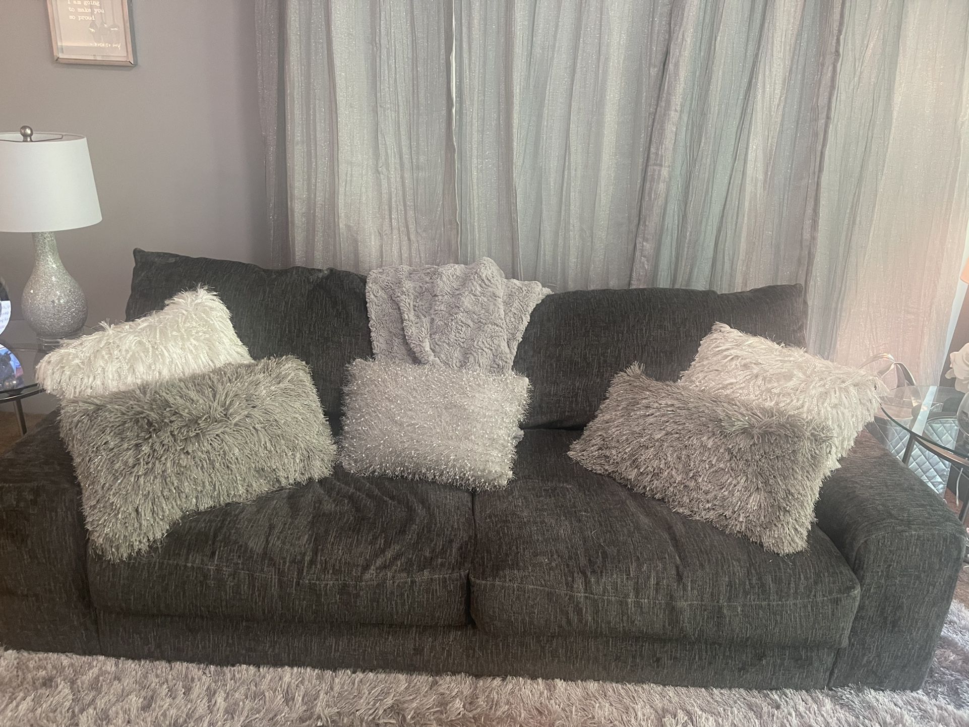 High Quality Couch. Dark grey . Súper confortable and in Excellent condition .. I got the couch 7 months ago, but moving out of state so have to sell it . Paid $ 1500 at the store , selling it for $1000 or best offer, The couch is 6ft by 3ft ,