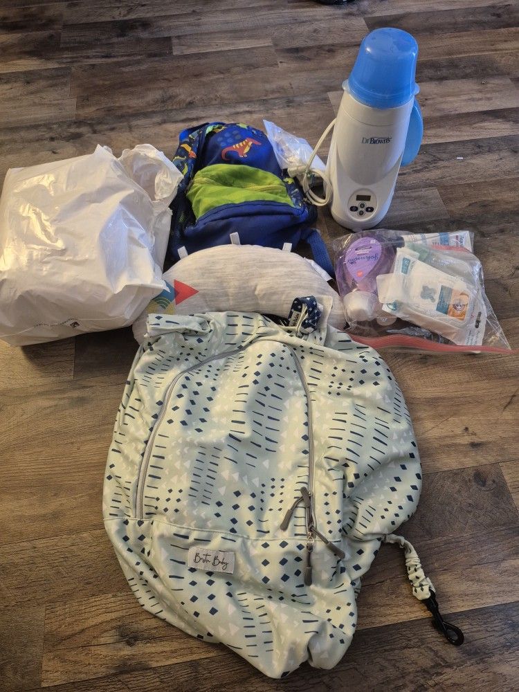 Baby shampoo, paci wipe, diaper cream, dr browns bottle warmer, small backpack, little pillow, postpartum L diapers and car seat cover. Please take all and gift what you don't want.