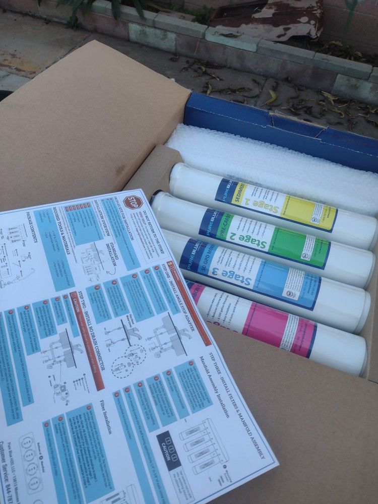 This item is brand new in the box. I opened it to show the items inside. This is a 4 stage filtration system. The brand is Pure Blue H2O. Directions are included. Cash only, no exceptions. Make me an offer.