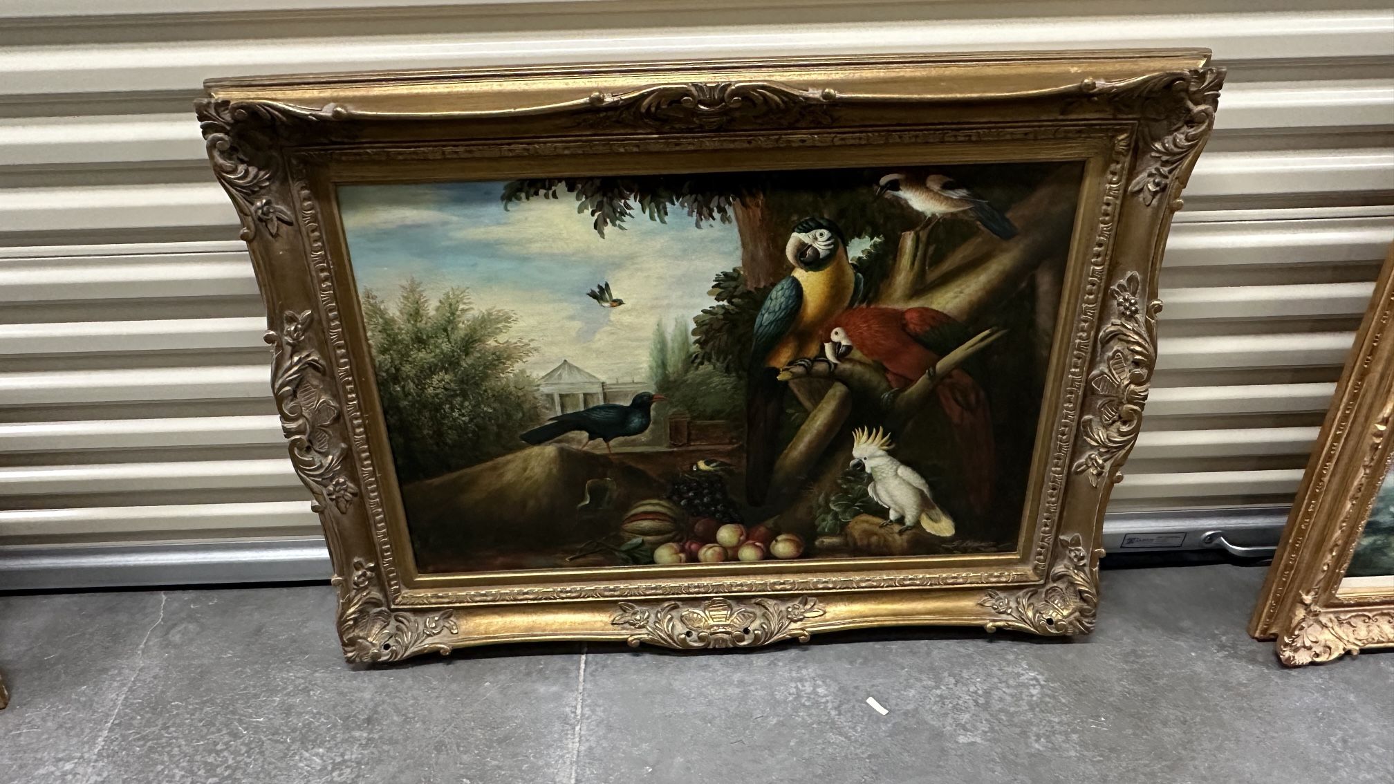 Large Tropical Bird Oil Painting Gold Frame Unique