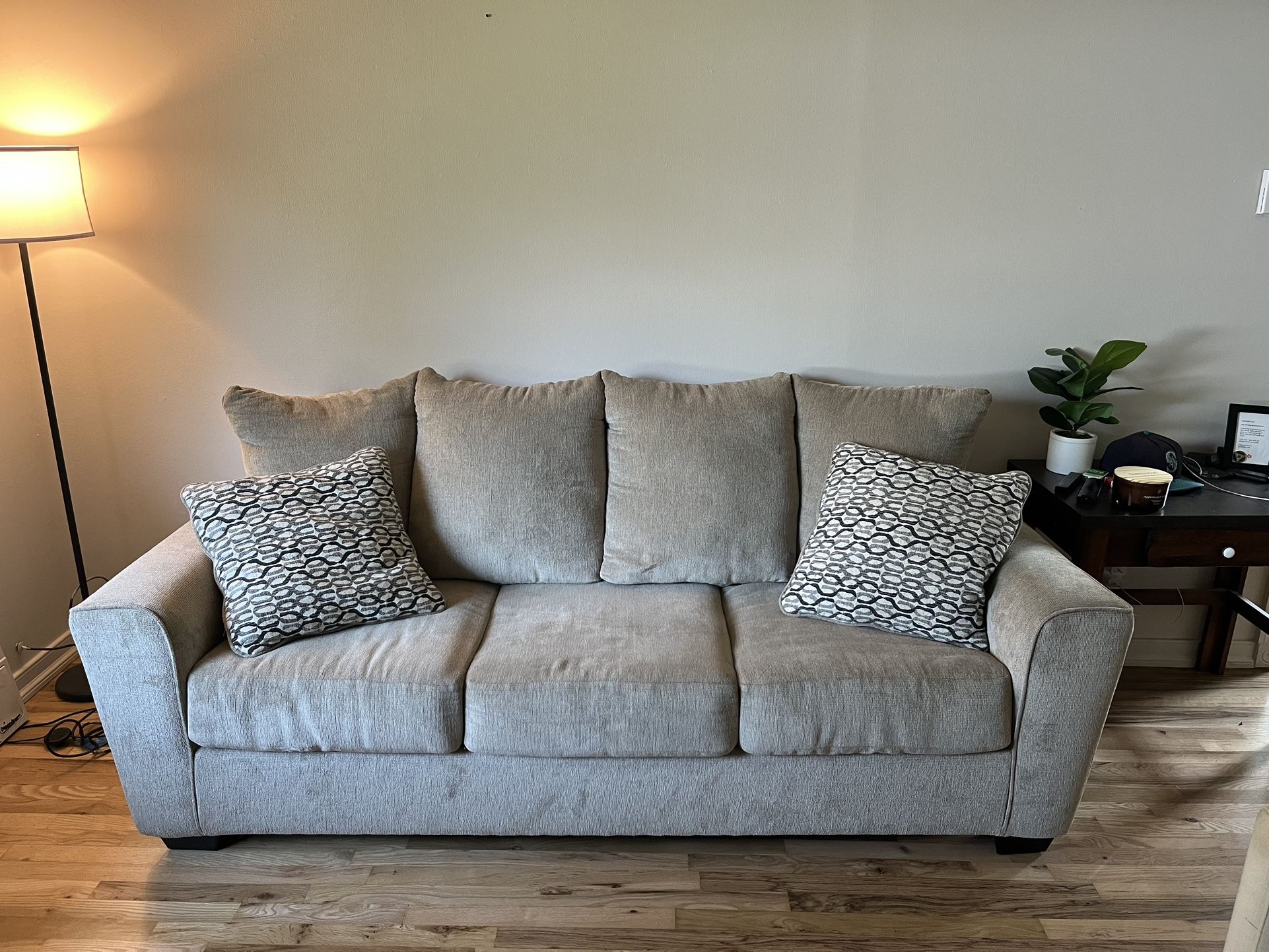 Hi there, I’m selling this couch as I moved to a new home and will be getting new furniture. It’s approximately 2 years old and originally purchased for $500