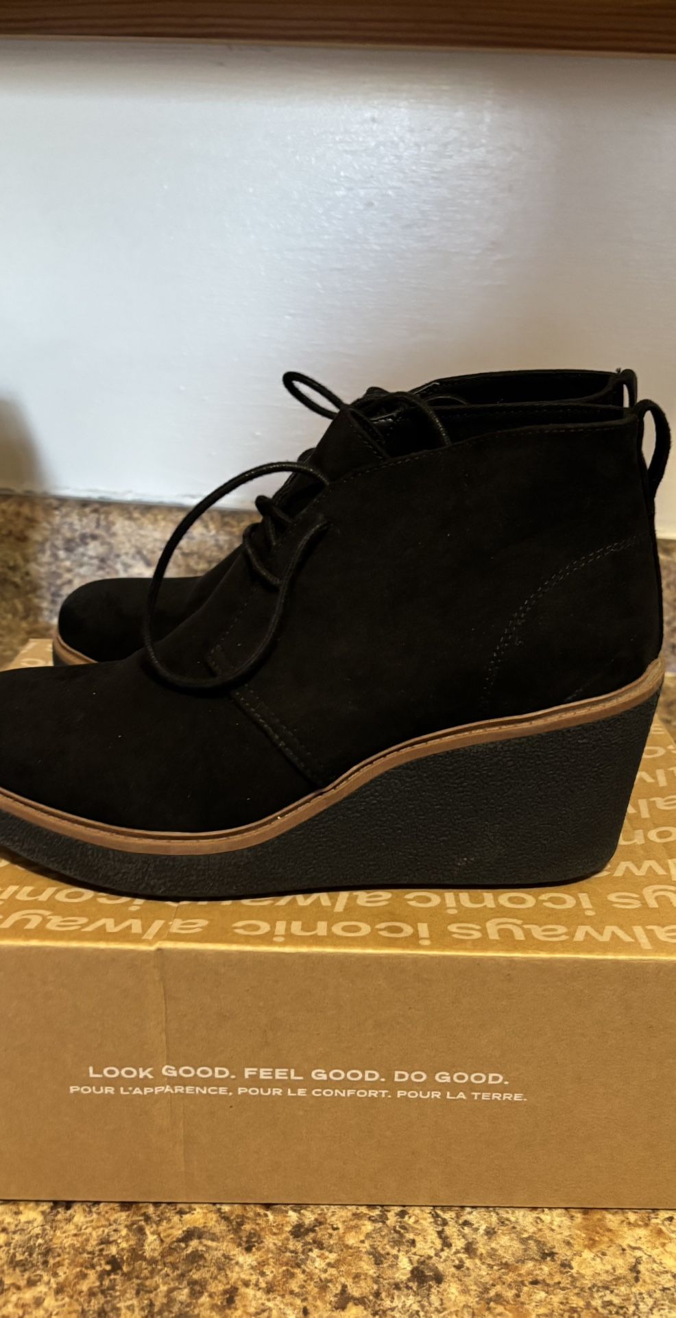 Black suede wedge boots size 9.5