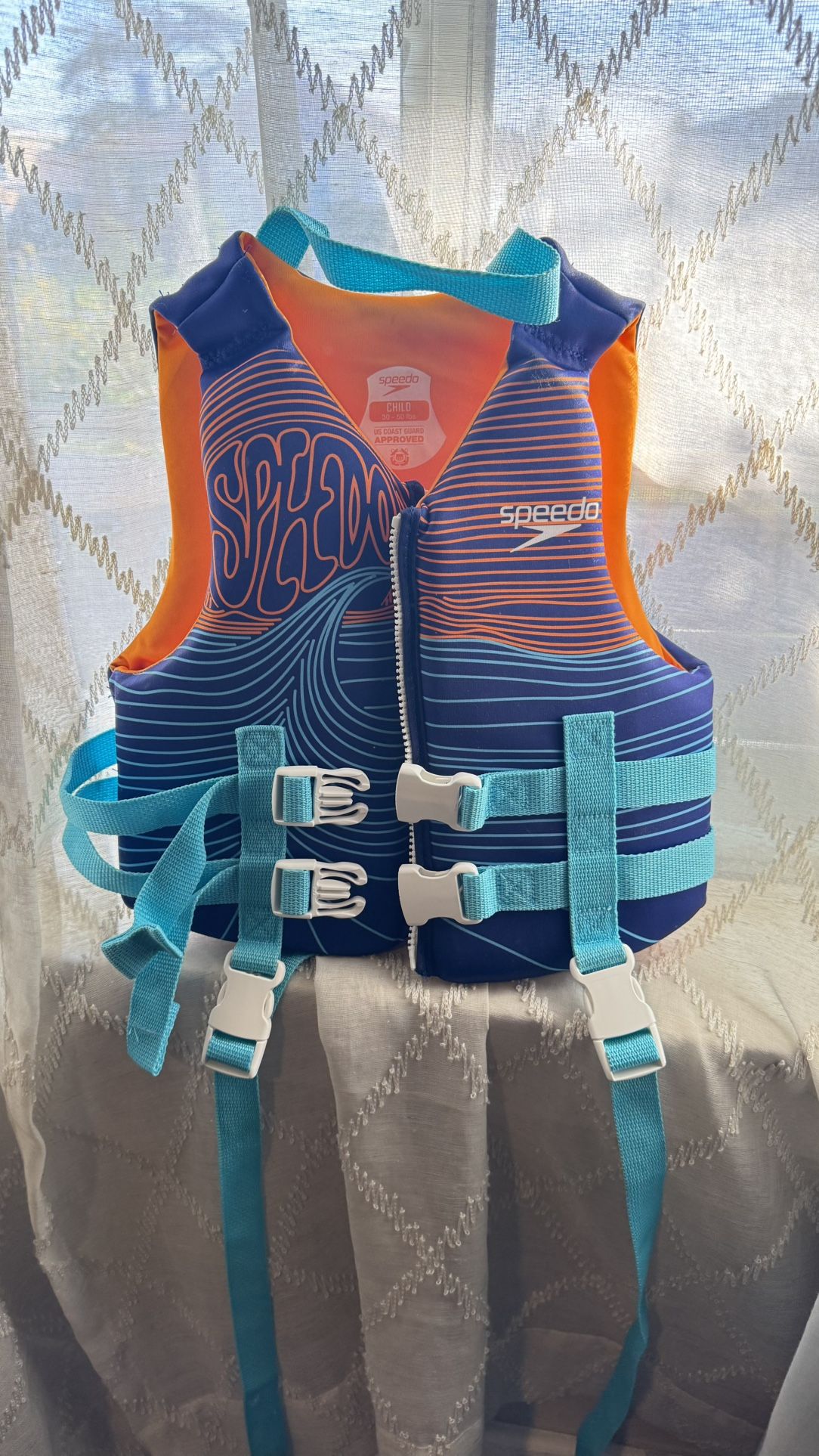 Pre-loved Speedo Life Jacket Child. In great condition. Bright color and snug fit for child 30-50lbs. Water safety π. Pick-up only. $25