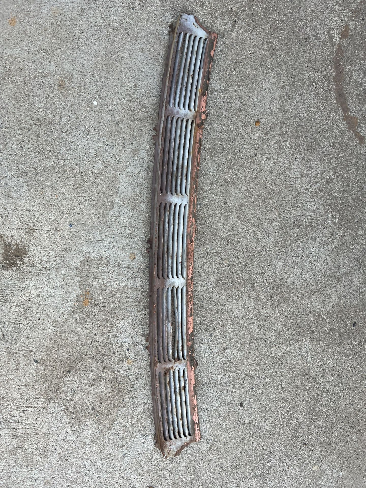 GM original parts. Used and straight 1955 through 1956 PONTIAC center mounted windshield fresh air intake cowel vent grille body insert panel! This part is in great solid condition with only surface rust. Has a slight bend on one of the vents but that’s it. Take it for 20 bucks firm.