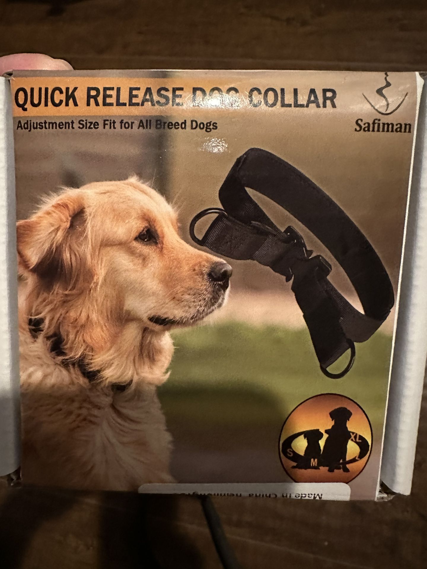 Black new never used tactical quick release dog collar it adjusts to small, medium and large easy to use.