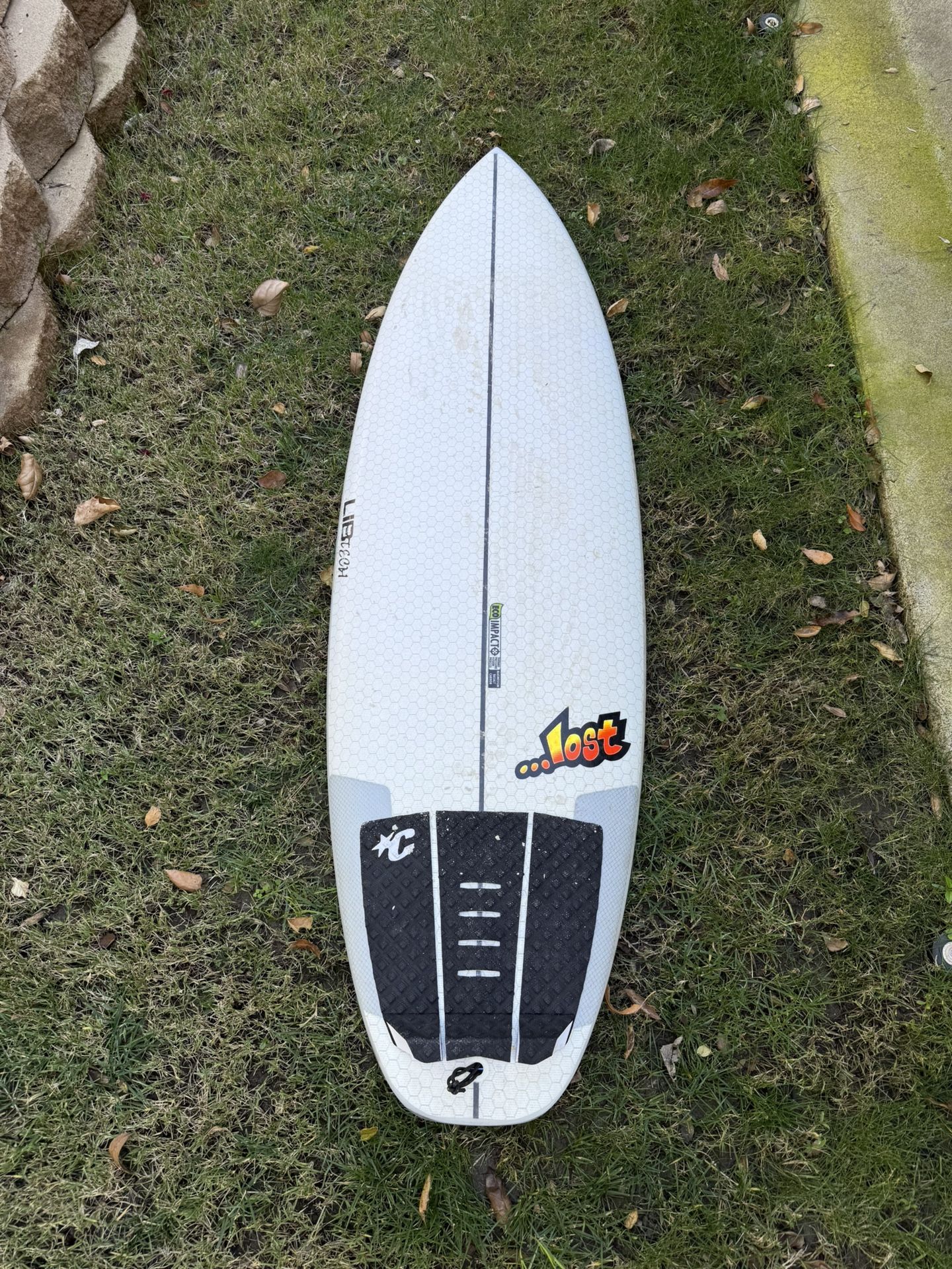 5’6” 30L. Barely used not the right size for me. Great everyday board for all conditions especially beach breaks. The rust at the fin boxes is just from the fin screws themselves.