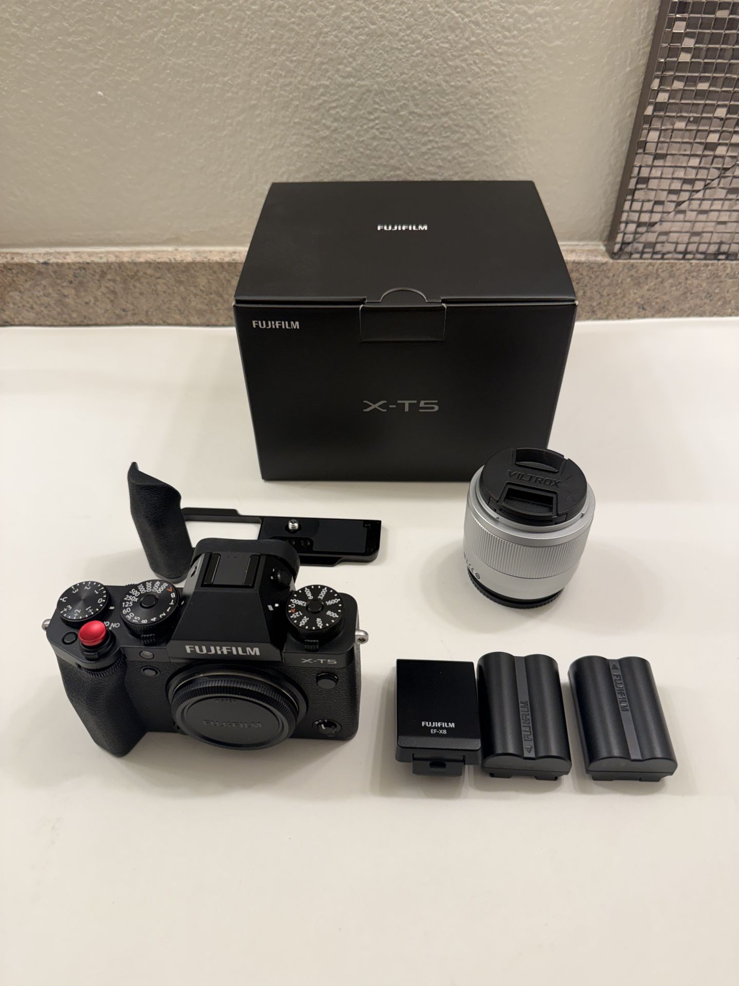 Fuji xt5 excellent condition Shutter count 3568 Comes with box Viltrox 56mm 1.7 2 official fuji batteries Smallrig grip Red shutter button Fuji flash