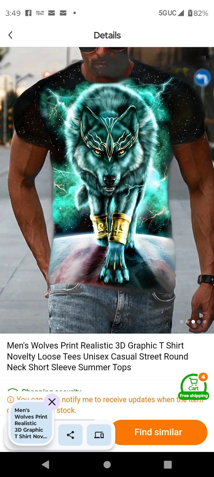 Men's Wolves Print Realistic 3D Graphic T Shirt Novelty Loose Tees Unisex Casual Street Round Neck Short Sleeve. Size medium (38), brand new still in package.