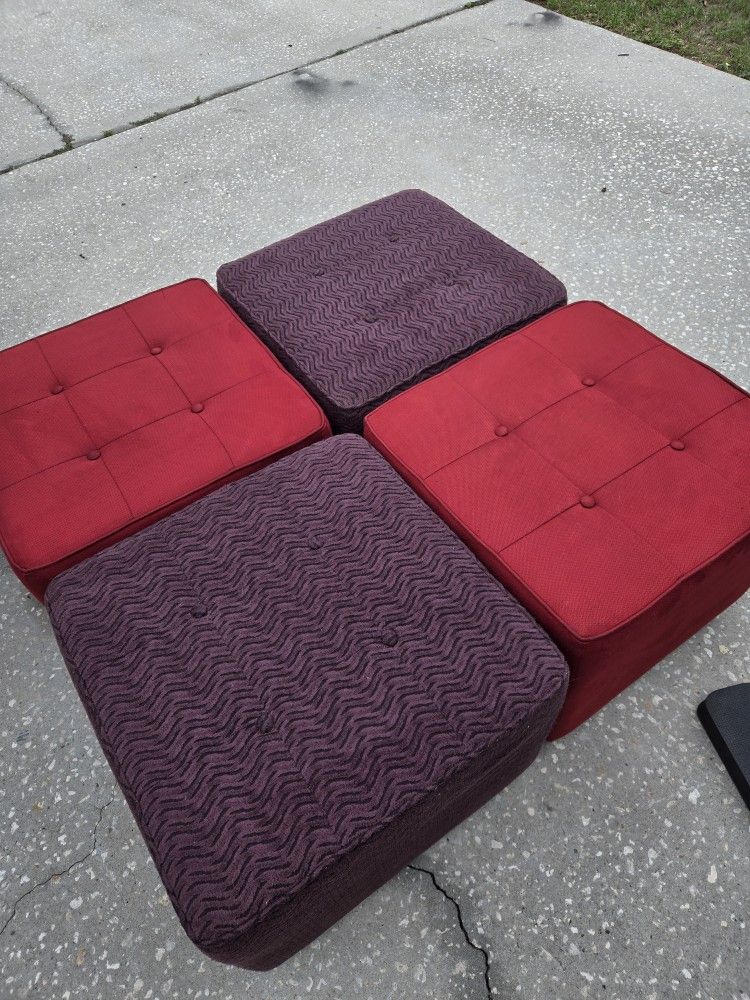 Set of 4 Cubed Ottoman Younger Furniture, Inc 16" Height Crimson Red and Burgundy