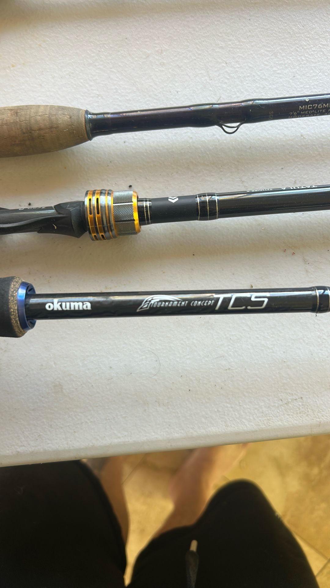 Penn power stick 6’6” 35$ Quantum tour 6’”6 25$ Veritas 25$ 7’1” mh Mojo inshore 45$ 7’6”ml )sold) Daiwa tatula 45$ crankbait rod (sold) Okuma tcs 45$ 7’0 mh