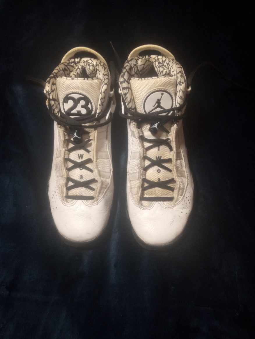 Air Jordon # 23 TW03 White On Black High Top Sneakers In Good Looking Condition Size 6-1/2 Y.