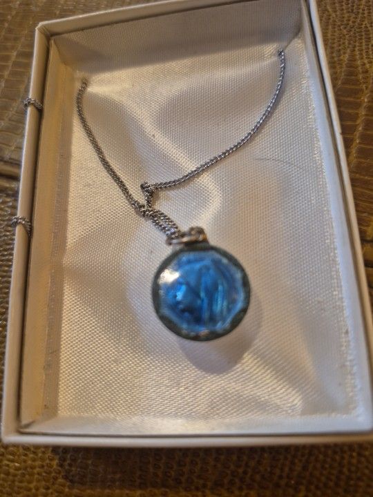 Catholic blue enamel medal l of Our Lady of https://offerup.com/redirect/?o=TG91cmRlcy5uZXc= in original box
