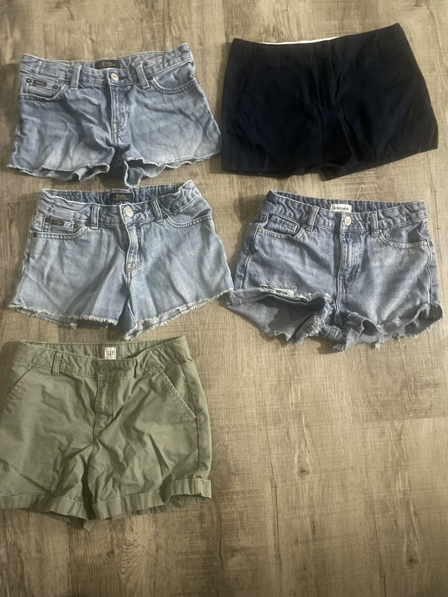Hello, selling a mixed lot of girls jean shorts and chino shorts. Mixed brands: Polo Ralph Lauren Shorts (2) jcrew crewcuts chino (navy) Gap chino shorts (army green) RSQ jean shorts Will sell all for $60 or will sell separately. Polo and j crew shorts $15 each Gap and RSQ $12 each All items from a clean home (no smoking, no pets)