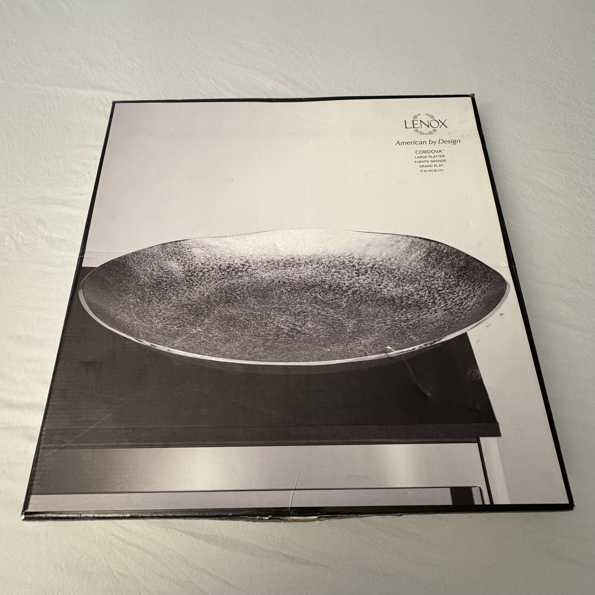 LENOX Cordova Large Metal Platter 17” Pewter Gray Open Box #866591 LOOK! Platter is NEW, Open Box, in Excellent Condition! MSRP $150. LOCAL PICK UP ONLY in Long Beach and surrounding beach cities, LA, OC areas. Send message to seller to arrange meet up.