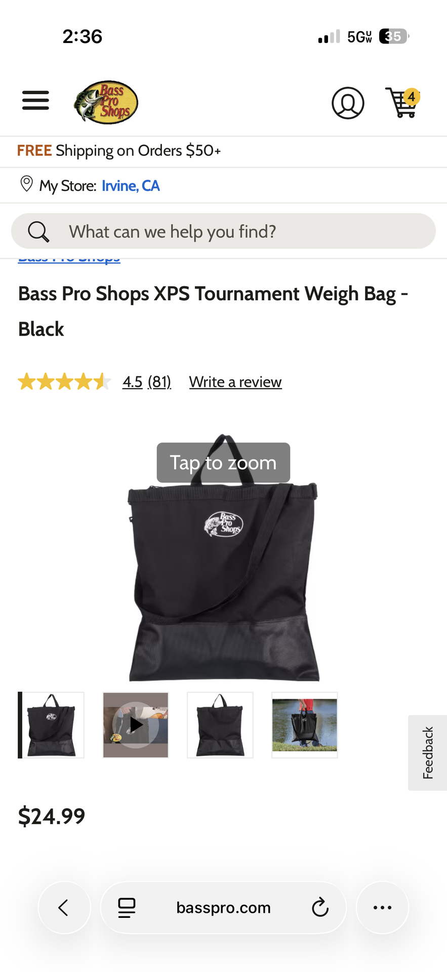 BRAND NEW Spook-proof black material actually calms fish and reduces stress during transport. The Bass Pro Shops® XPS® Tournament Weigh Bag is made of heavy-duty 600-denier nylon with a PVC coating. A rugged diamond rubber material protects the bottom third of the bag for long-term durability. Other features include woven nylon handles, a removable shoulder strap, and a zip top that prevents fish from escaping and slows water loss in the event the bag is tipped over. All seams are sonic-welded for waterproof integrity. Imported. Spook-proof black material reduces stress on fish Heavy-duty 600-denier nylon with a PVC coating Sonic-welded seams Woven nylon handles Removable shoulder strap