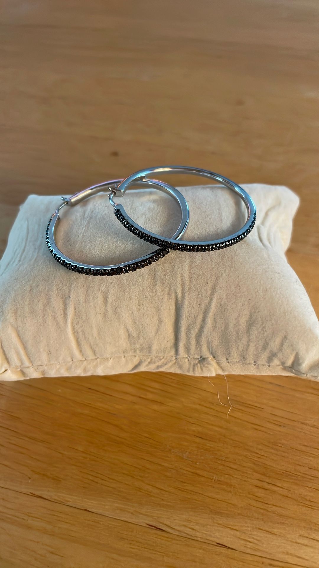 Beautiful stainless steel earrings with black onyx insets. Very striking and fashionable.