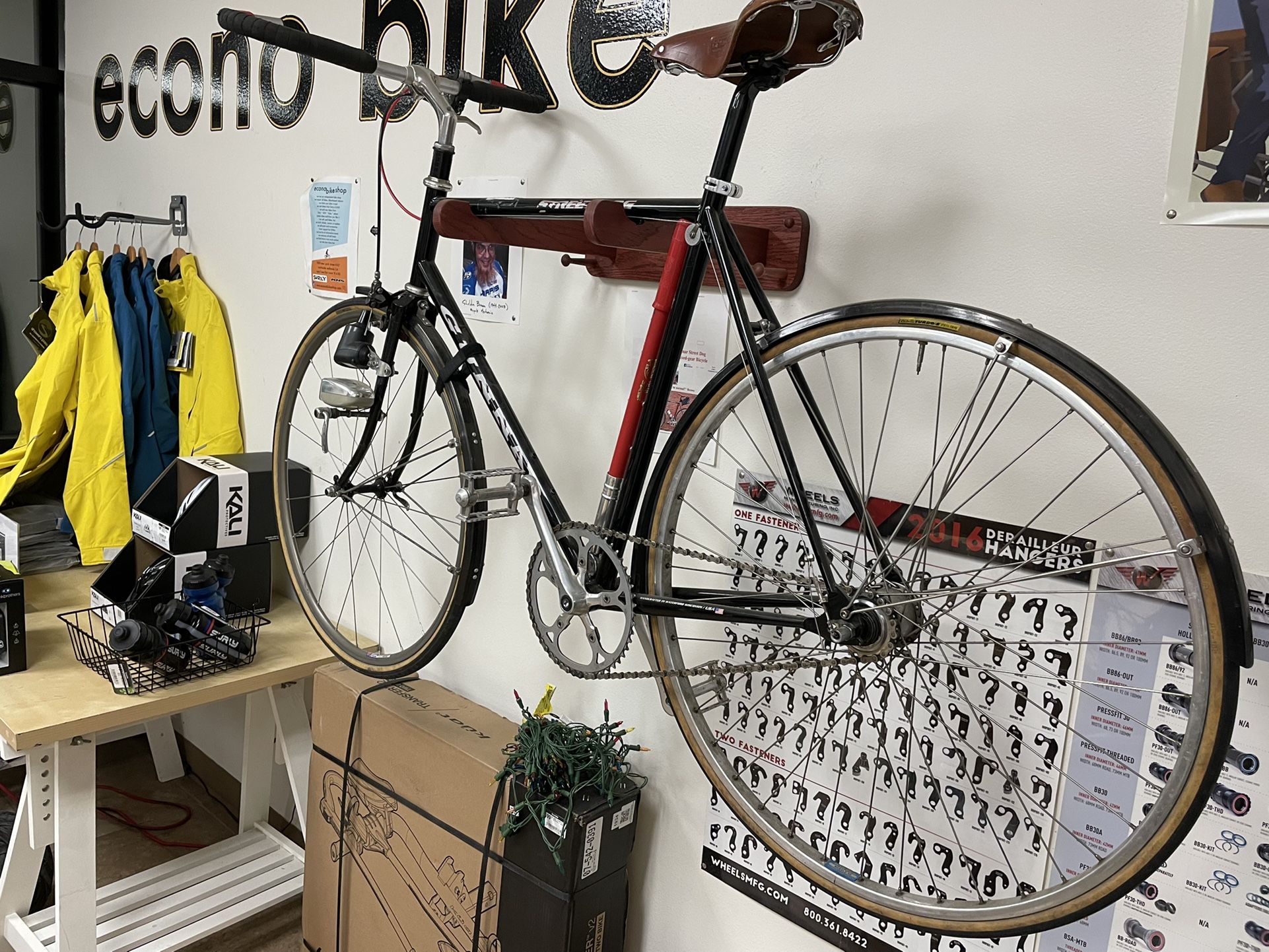This is Sheldon’s bike, the real deal. You can read more on his old website: https://offerup.com/redirect/?o=aHR0cHM6Ly93d3cuc2hlbGRvbmJyb3duLmNvbS9vcmcvZ3VubmFyLWluZGV4Lmh0bWw=. The saddle is different from the on the website, but it's still a nice Brooks. Sheldon's gain ratio chart is still taped to the top tube. The S/A shifter is a little janky, but the 3-speed fixed gear S/A ASC hub works beautifully and is a trip to ride. The rotor is missing from the bottle generator, so I don't know if the light works. There just aren't a lot of left-drive fixed-gear 3-speeds out there, let alone one that was built by the patron saint of fixie riders and garage bike mechanics. Own a piece of fixie/frankenbike history!