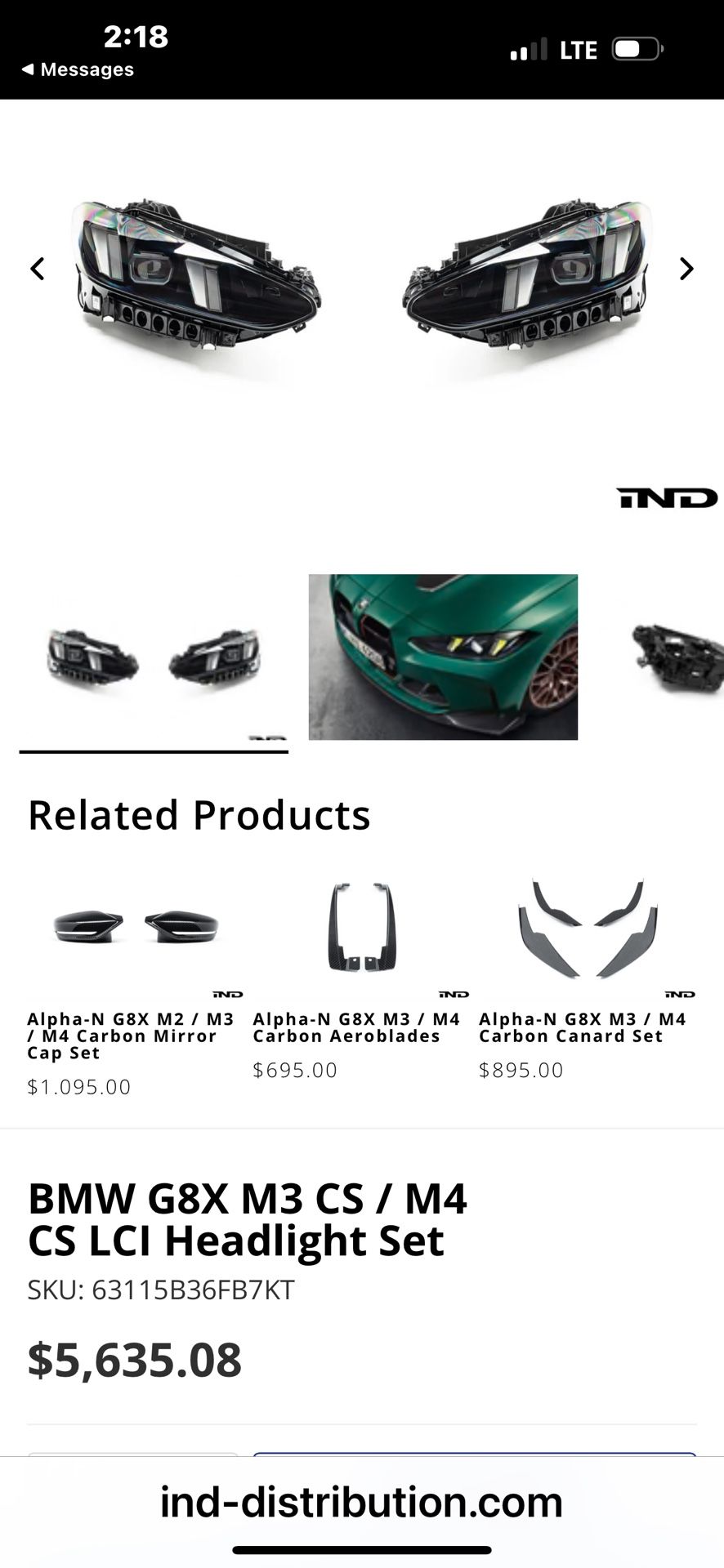 Hello, Just recently bought the headlights from IND 11/21/2025 Was on my car for almost a week working perfectly no issues reason for Selling it is because I just bought G80 2026 last week. This will work on LCI car just need coding, for pre Lci need to have Lci control module which I’m selling that as well not included in the headlight’s. Snake eye Headlights: 5000$ IND price 5635$ + tax Control module : 1000$ OEM BMW control module for both side dealership price 850$ a piece. Buyer pay for shipping Or local pickup Long Beach Will add more photos soon. 310-962-032seven