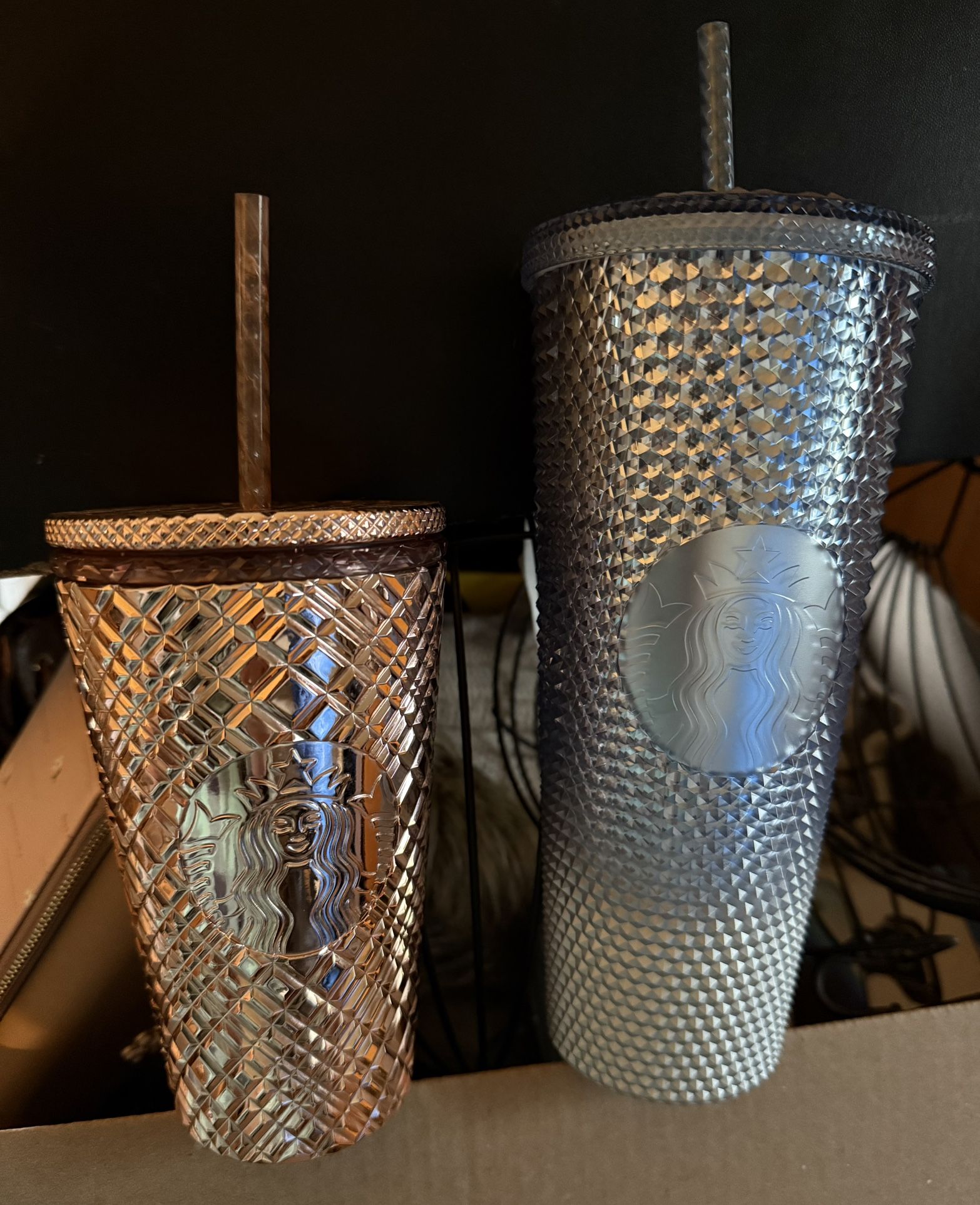 3 Starbucks cups, barely used. Copper - $10 Blue - $20 Fuchsia - $5 All 3 for $25