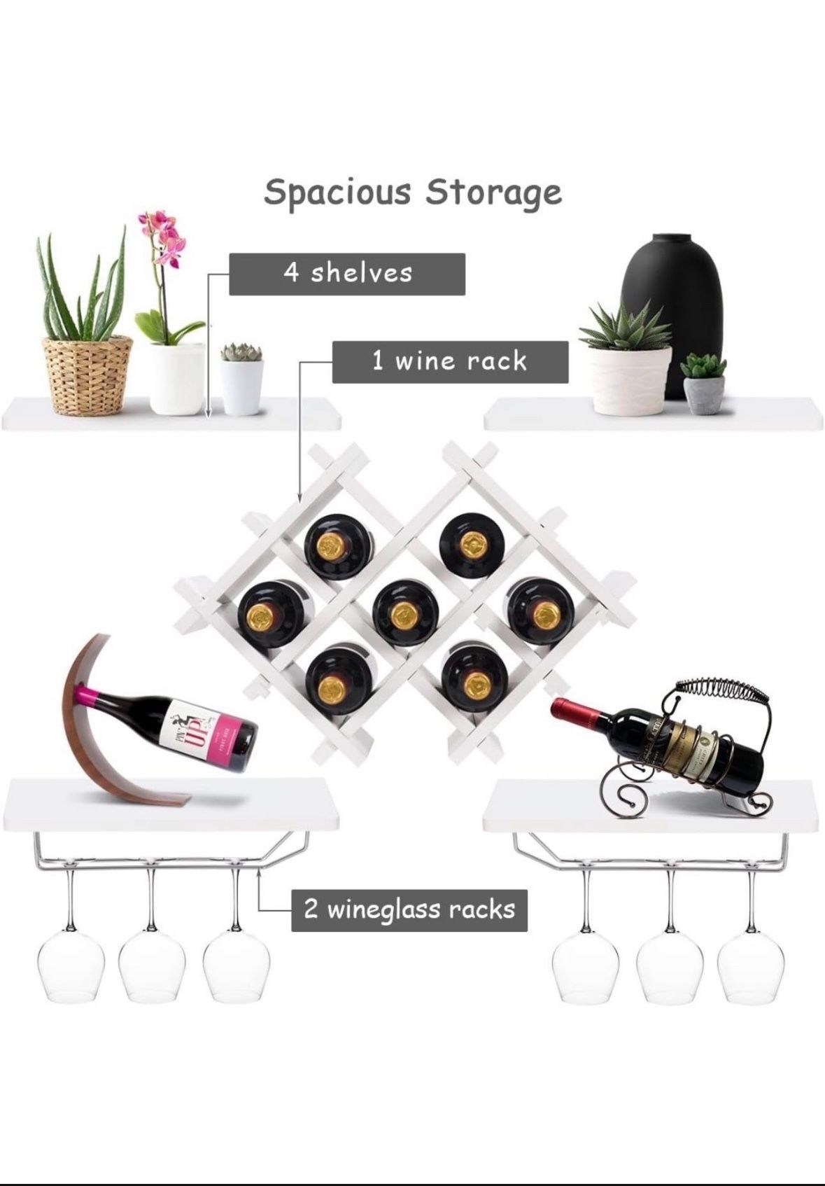 Costway Set of 5 Wall Mount Wine Rack Set w/Storage Shelves&Glass Holder Color (white)