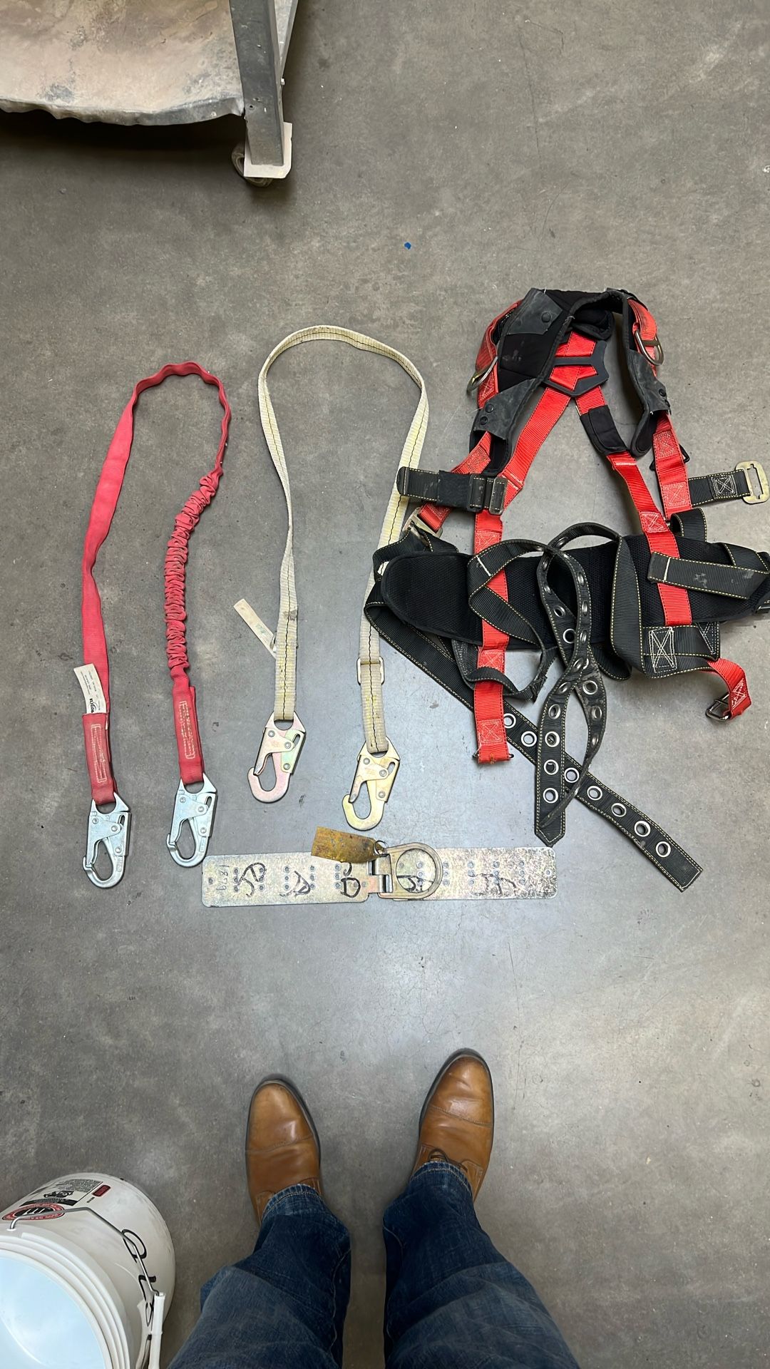 Used safety equipment - see full list pic Harness and lanyard kits - many available 4-pc. Harness, fixed and shock, lanyard and nail plate - $30 3-pc. Harness, fixed, and shock lanyards - $25 2-pc. Harness and shock lanyard - $15
