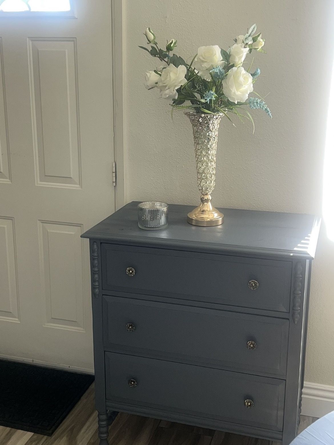 I buy antique furniture and refurbish them. This is a 1938 chest. (#5322) It has been freshly painted with beautiful flower knobs. A few knicks on top 37 H x 33 L x 19D