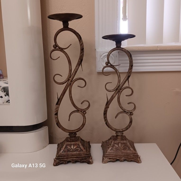 TWO METAL CANDLE HOLDERS